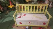 Actrita a folosit mai multe culori pentru ca banca sa fie una parca rupta din povesti. Dupa ce a vopsit-o in doua culori, blondina a desenat niste inimioare rosii si cateva buline albe.