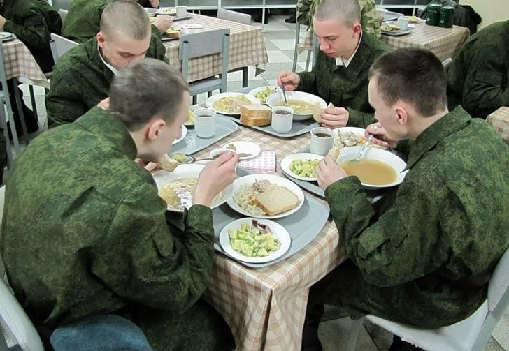 Militarii ruși primesc carne în aspic, pâine sau fasole cu ceapă și murături