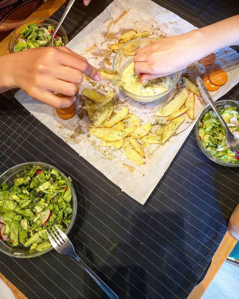 Aflată în izolare, alături de cei doi băieți, Olivia Steer a postat pe instagram cum a arătat masa lor de prânz. ”Un prânz mai mult verde: cartofi rumeniți la cuptor, stropiți cu ulei de măsline, cu multă salată, ceapă verde, ridichi, lobodă, mărar și pătrunjel și o maioneză raw-vegană, din avocado, muștar, lămâie și ulei presat la rece”, a explicat soția lui Andi Moisescu ce se află în fotografie.
