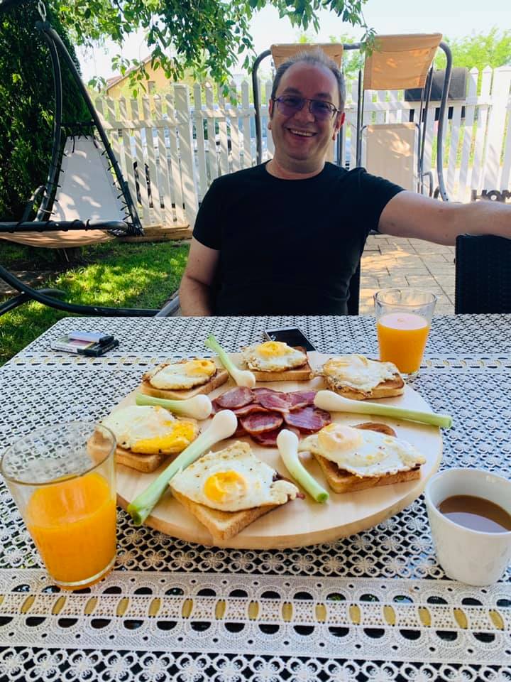 Liviu, soțul artistei, s-a trezit de dimineață și a întâmpinat-o pe Minodora cu micul dejun gata pregătit, servit în grădină, într-o dimineață de vineri însorită.
