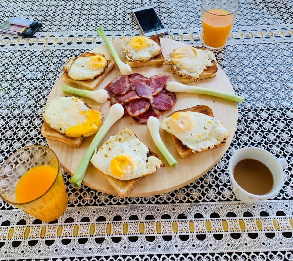 Mi-a pregatit micul dejun, pe care l-am servit in curte, curte pregatita...maturata, spalata...fresh 😂