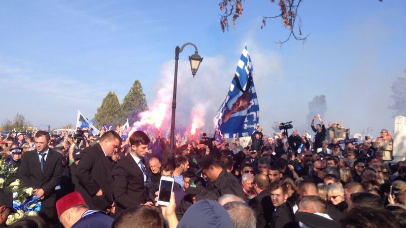Câteva femei în vârstă plângeau privind la mormântul Prinţului peste care groparii aşezau capacul. „Tu nu ai cum să mori” se vedea pe zidul capelei. Semnat: Peluza nord. Mai încolo două femei spuneau că nici la Regele Mihai nu a fost aşa. Alta încerca să convingă groparii să-i pună un fular alb-albastru în mormântul încă neacoperit.