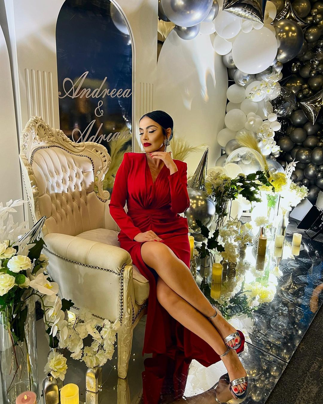 La petrecere, Andreea Mantea a purtat o rochie roșie ca focul, lungă, o pereche de sandale argintii, o coafură și un machiaj foarte elegante și rafinate. Pe de altă parte, și fiul ei a fost la fel de elegant ca mama sa, purtând un costum negru, cămașă albă, vestă și sacou. Cei doi, mamă și fiu, au atras toate privirile la eveniment, mai ales pentru că au o relație atât de specială, pe care o mulțime de fani o admiră.