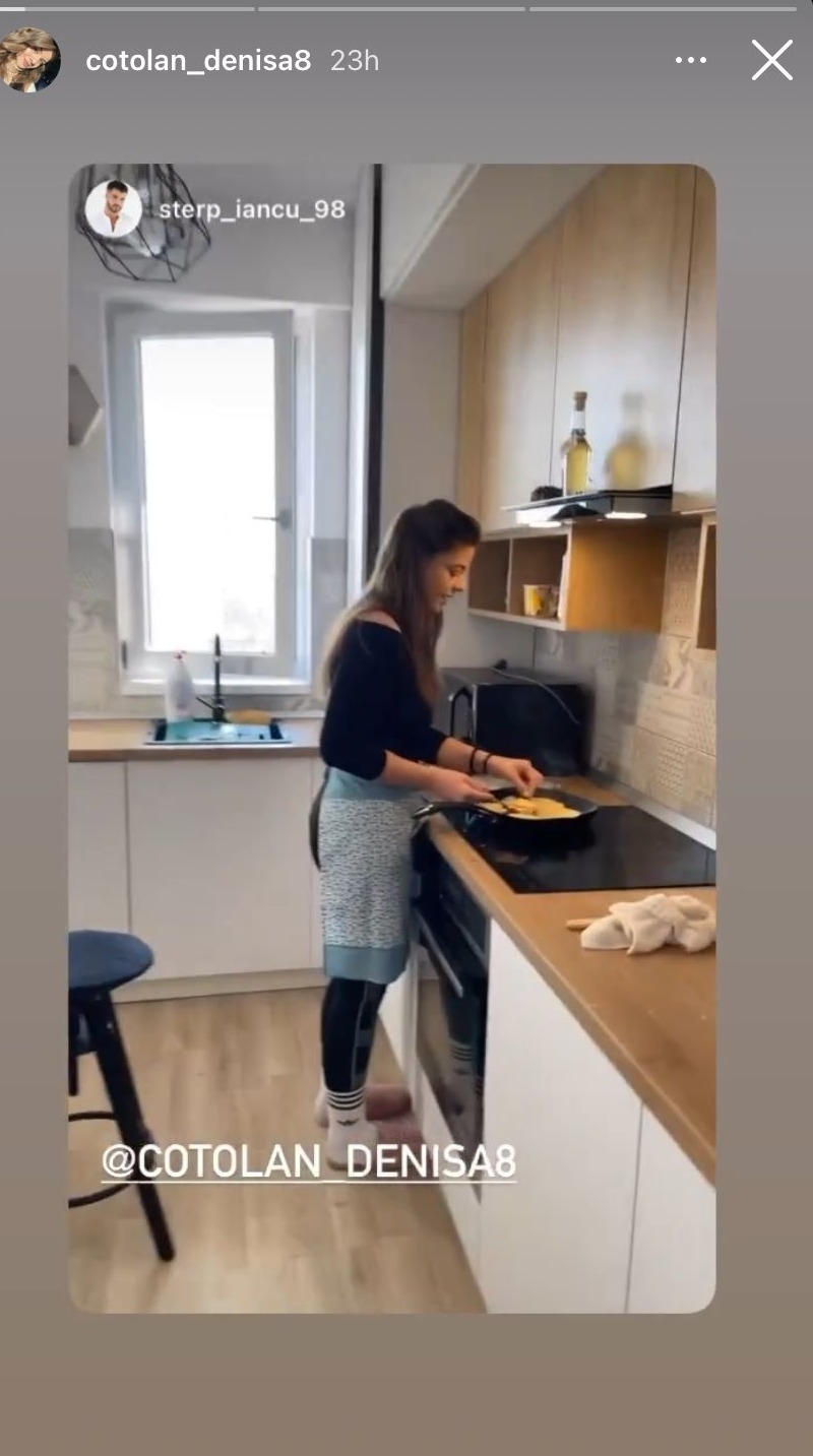 Recent, Iancu Sterp a postat în mediul online un scurt filmuleț în care o surprinde pe Denisa Coțolan în bucătărie, în timp ce îi gătea. Mândru de iubita sa, tânărul i-a făcut mai multe complimente iubitei sale, apreciind că nu-și poate dori nimic mai mult.