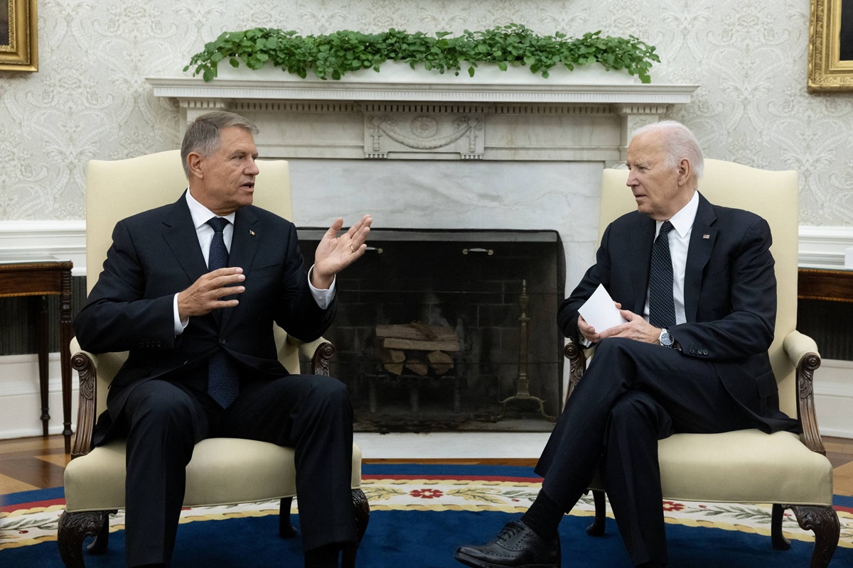 Klaus Iohannis și fostul președinte al Statelor Unite ale Americii, Joe Biden, de vorbă în Biroul Oval al Casei Albe, in anul 2024