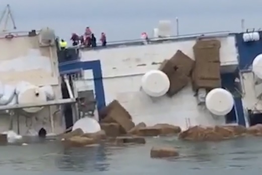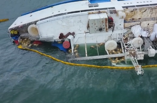 Acum însă, animalele moarte plutesc pe apă, după ce nava s-a înclinat pe o parte.