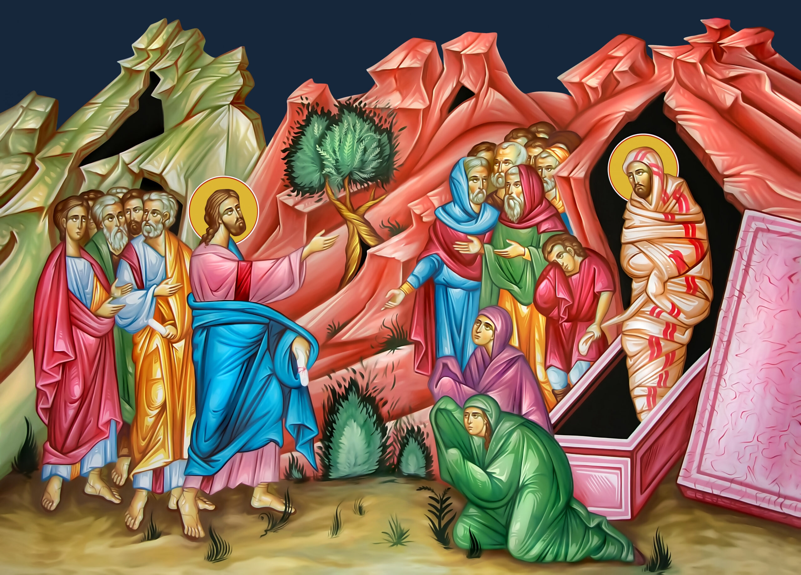 Iisus Hristos a ajuns după ce Lazăr a murit. Deși au trecut 4 zile de la deces și era deja în mormânt, Lazăr a fost readus la viață de către Iisus. Această minune a făcut ca evreii care se aflau de față să creadă în Hristos.