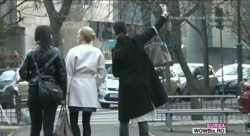 Paparazzii au surprins-o cu prietenele prin oras, la o cafea. Alina Puscas poarta o tinuta lejera, relaxata si se misca fara nicio problema. Inainte sa se desparta de fete, vedeta de televiziune scoate si telefonul si face un selfie.