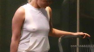 În imaginile surprinse de fotografi, aceasta nu poartă sutien şi, mai mult de atât, pantalonii şi bluza mult prea lejeră îi lasă la vedere formele.