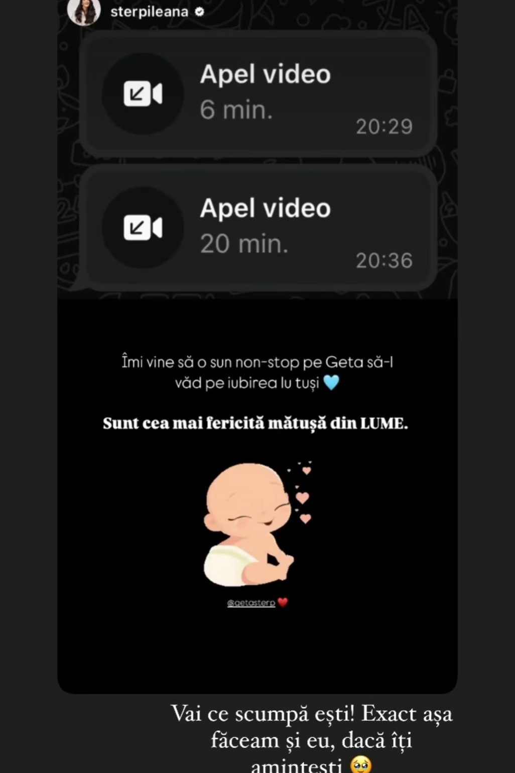 „ Îmi vine să o sun non-stop pe Geta să-l văd pe iubirea lui tuși. Sunt cea mai fericită mătușă din lume!”, a