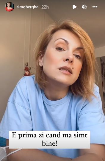 ”Astăzi este prima zi când mă simt om pentru că zilele trecute n-am fost tocmai bine. E prima zi când teoretic aș putea să ies, pentru că decizia de izolare a fost până ieri inclusiv, dar nu o s-o fac pentru că în continuare tușesc și nu vreau să pun în pericol pe nimeni”, a spus Simona într-un video postat pe Instastory.
