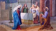 Simeon, un om foarte credincios care se ruga mereu, aștepta cu nerăbdare să-L vadă pe Mesia. Când L-a luat în brațe pe Iisus, a spus: