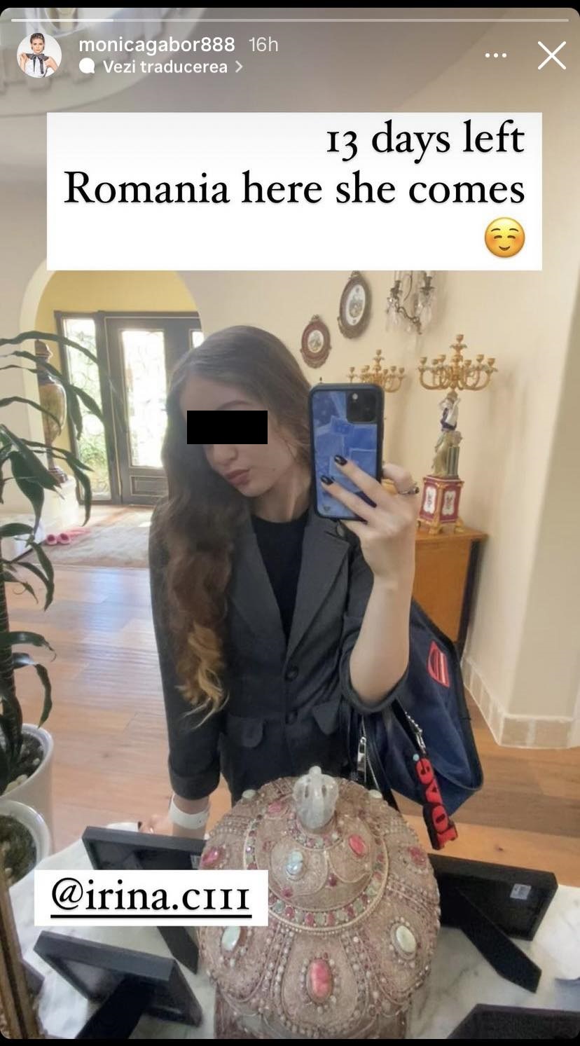 „13 zile au mai rămas! Irina vine în România”, a scris Monica Gabor pe Instagram.