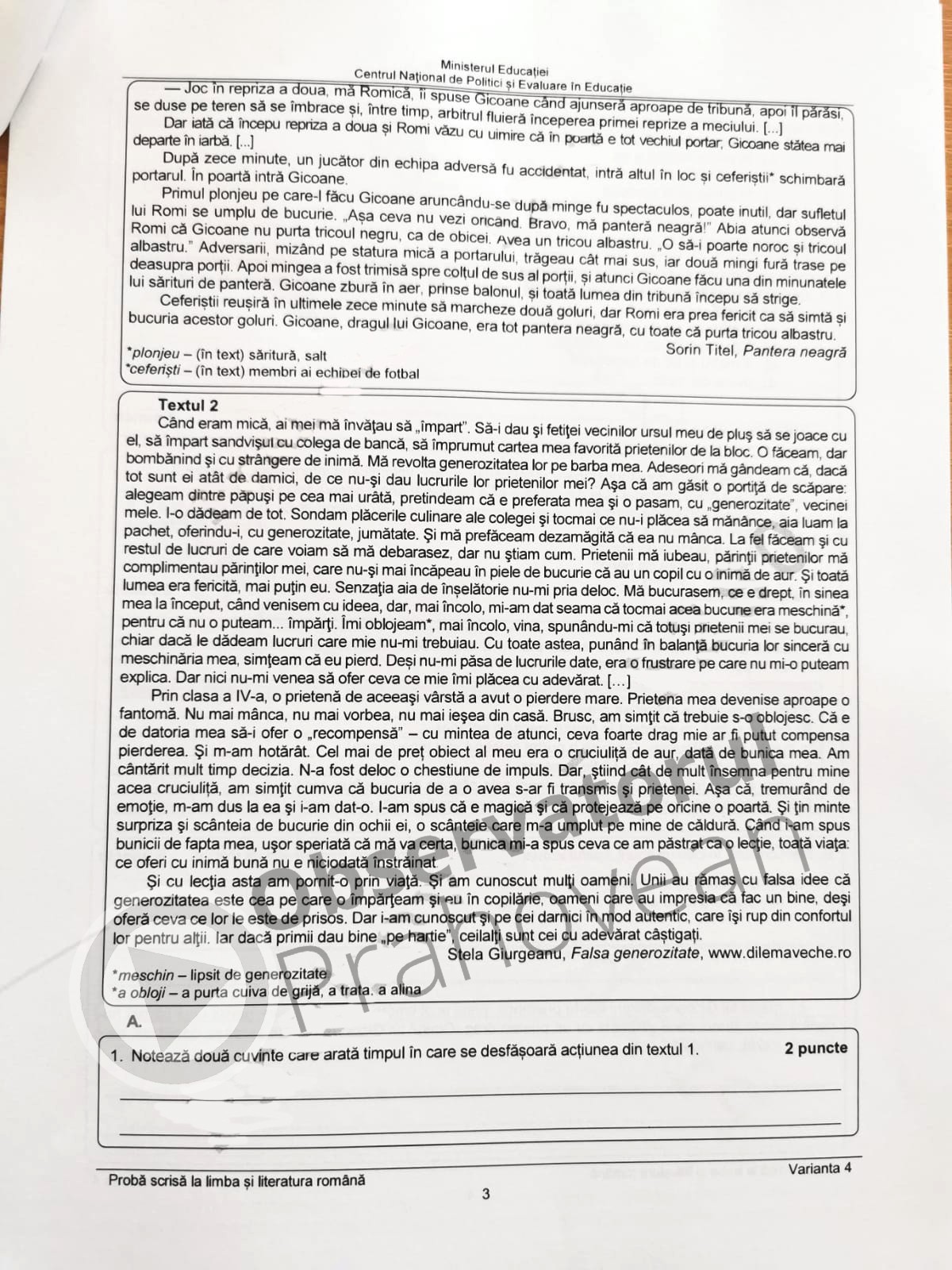 Ce subiecte au picat la română la Evaluarea Națională 2021