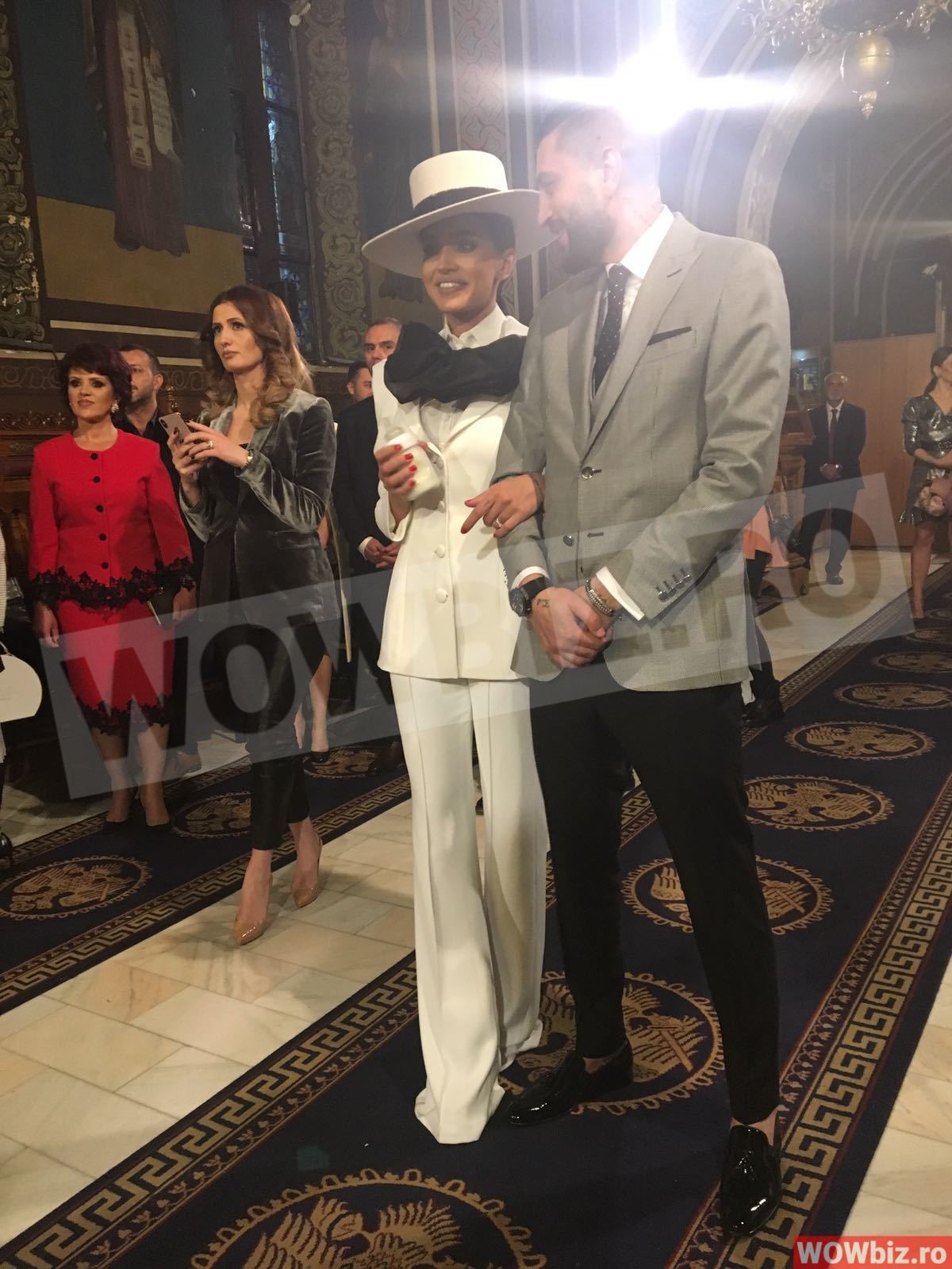 „Am ales să port alb, pentru că este o zi cu mare însemnătate, iar albul emană puritate. De la bun început am ştiut că-mi doresc o ţinută decentă, cu pantalon, sacou şi pălărie. Pălăria mi se pare că este elementul surpriză în acest outfit şi care îl completează perfect. Îmi plac detaliile fine, tocmai pentru asta, am rugat-o pe Andreea de la Mmarquise să-mi croiască mânecile cu acel detaliu la umeri. Am mers pe linii drepte, fără decolteuri sau picioare goale la vedere. Respect faptul că merg într-o biserică unde o vom boteza pe fetiţa noastră, iar ţinuta trebuie să fie una corespunzătoare din toate punctele de vedere”, anunţa Adelina Pestriţu.
