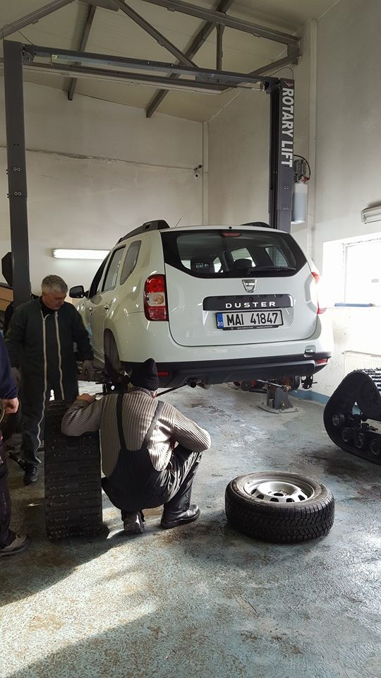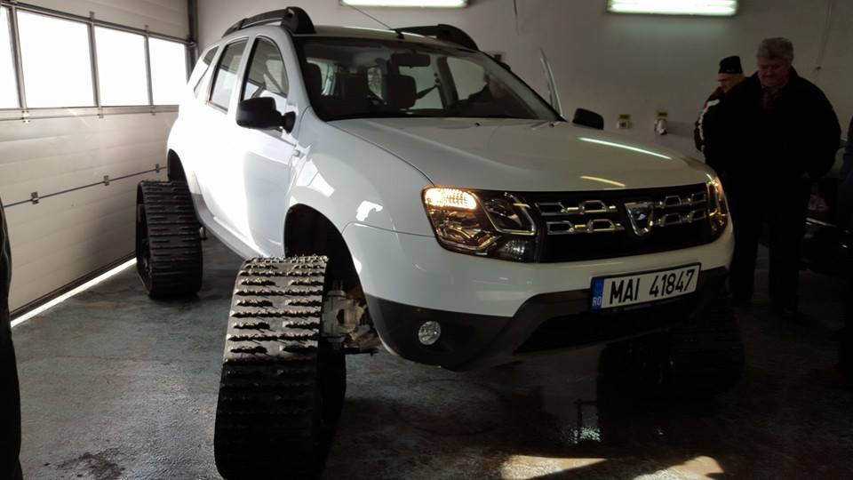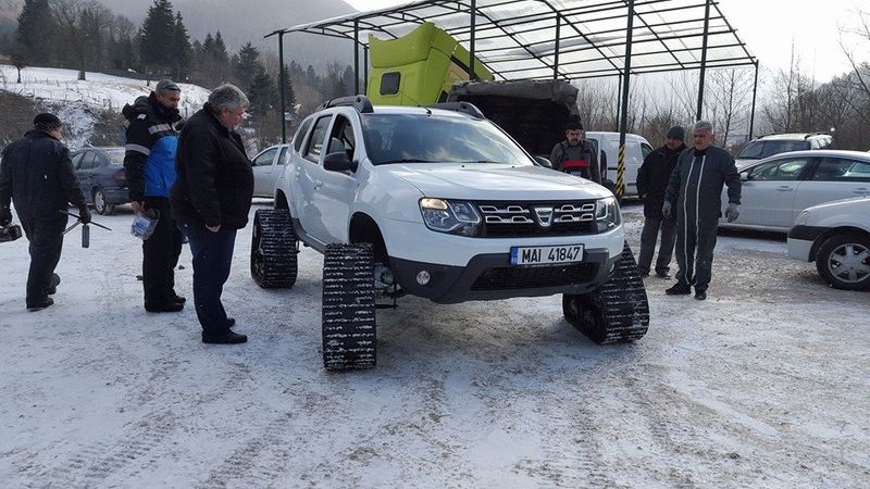 Ei au montat pe o Dacia Duster senile prototip. Aceasta operatiune s-a facut intr-un atelier service, iar ce a iesit din mana mecanicilor este o bijuterie pe „patru senile”.