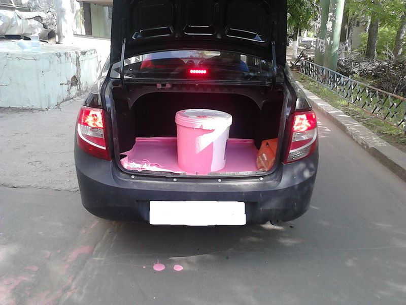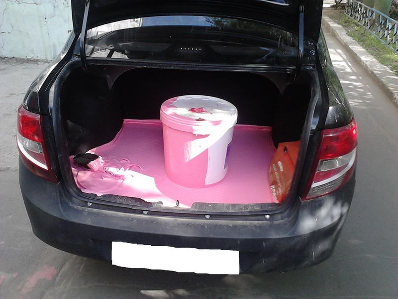 Cel mai ghinionist sofer! A cumparat o galeata de lavabila roz si a pus-o in masina! Cum arata autovehiculul dupa o frana brusca