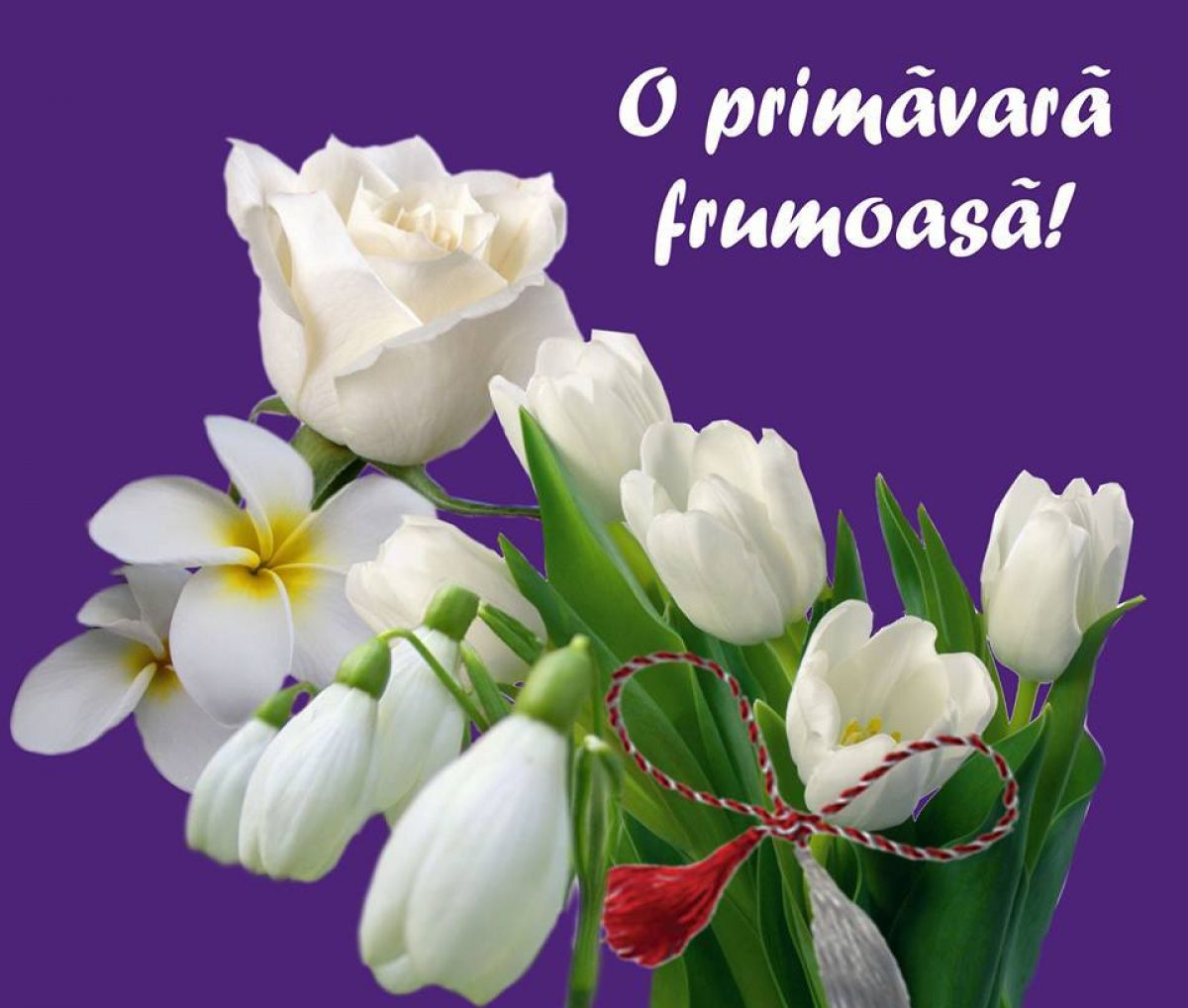 „Flori de primăvară să-ți mângâie sufletul și să-ți aducă șoapte dulci de iubire si clipe de fericire! La mulți ani de Mărțișor!’