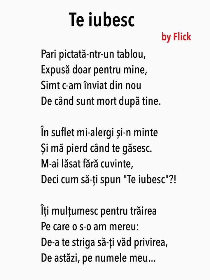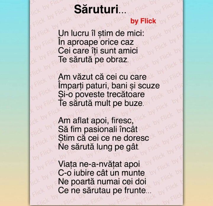 Cei mai îndrăzneți, plini de curaj și încredere, dar și cu o doză de romantism și creativitate, pot chiar să creeze spontan o scurtă poezie, din câteva versuri, în rime. Unul dintre cei mai talentați „poeți” ai vremurilor noastre este, fără urmă de îndoială, Flick, domnul Rimă, care obișnuiește să împărtășească cu fanii din mediul online versurile în rime pe care le creează.
