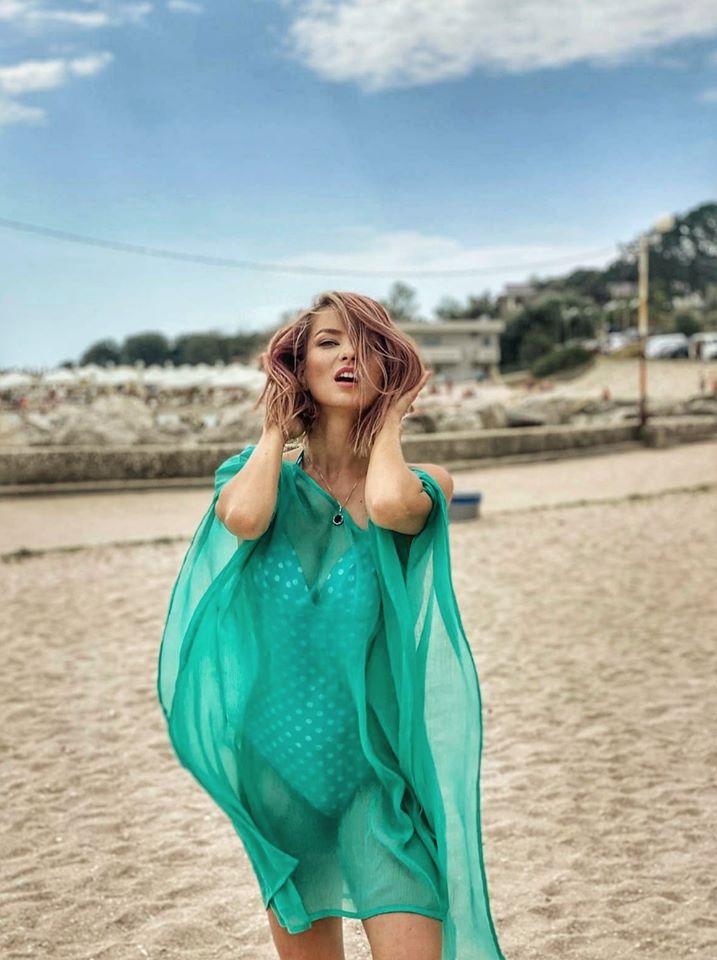 Purtând, evident, costume de baie care mai de care mai mici și mai decoltate, în ciuda faptului că are, cu siguranță, o cupa la sutien care trezește gelozia fetelor de oraș, mai ales că nu a avut nevoie de operații estetice care să îi ofere ”numere” în plus când vine vorba de alegerea lenjeriei intime.