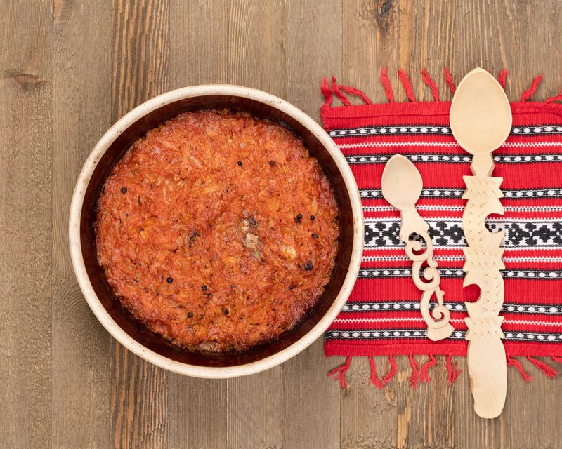 Se scoate varza din butoi și se lasă la desărat pentru 2-3 ore, apoi se mărunțește fin și se stoarce. Se toacă ceapa și se lasă la călit împreună cu 3-4 linguri de ulei, împreună cu ardeiul roșu. Ulterior, se adaugă varza și se lasă la foc mic, cu o cană de apă. Timpul de preparare este de 30-40 de minute, la 160 de grade. Când este gata, poate fi servită cu mămăliguță alături.