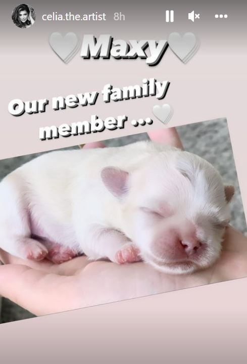 De asemenea, pe Instagram, Celia a dezvăluit că singurul puiuț, Maxy, va fi extrem de răsfățat, fiind convinsă că cei doi copii ai ei vor avea mare grijă de animalul de companie.