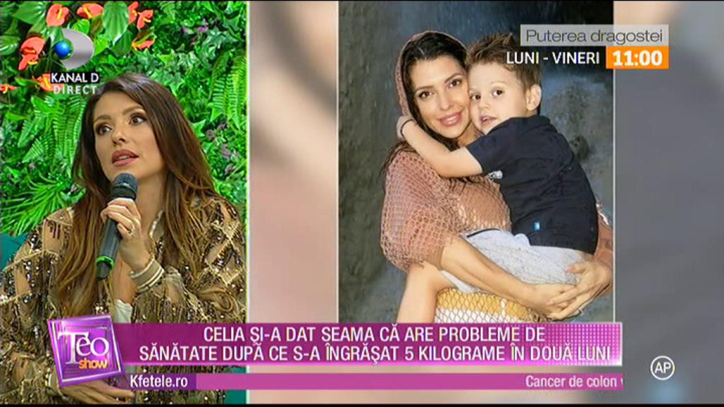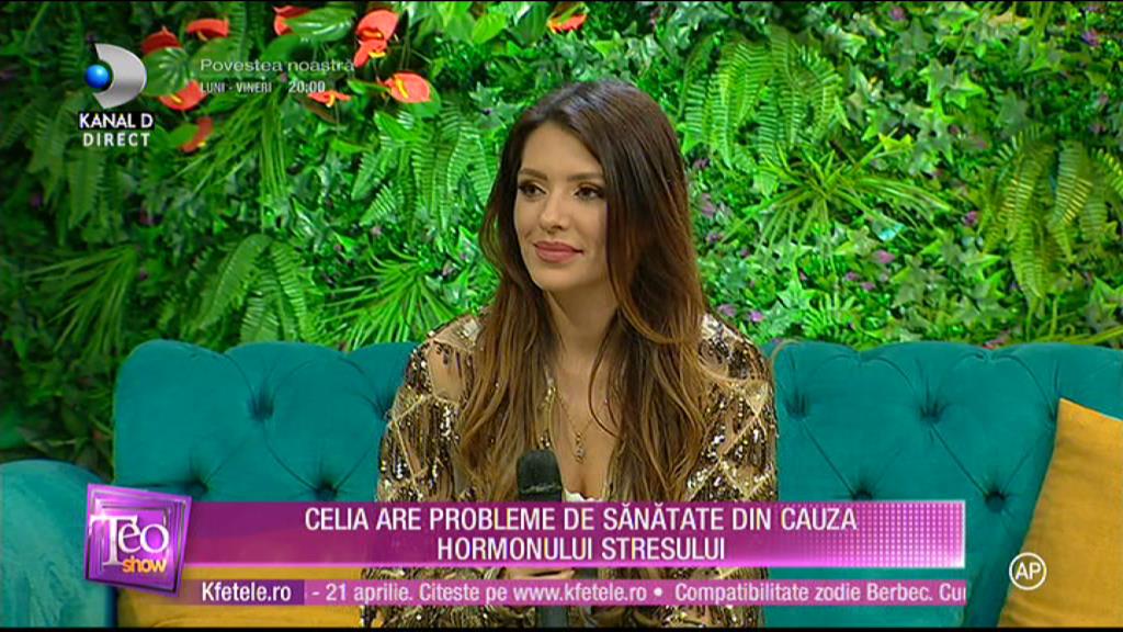 Celia a povestit la Teo Show ce a aflat după ce a mers la medic și a făcut analize. După o perioadă foarte stresantă, organismul artistei fusese dat peste cap de un hormon secretat în exces: cortizol.