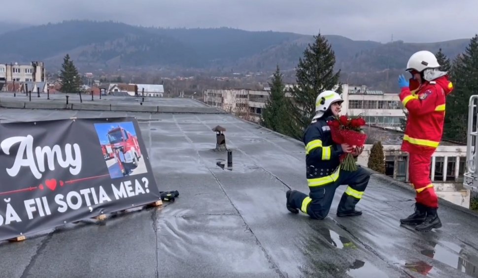 Scena emoționantă a fost surprinsă de colegii celor doi pompieri și a fost postată pe rețelele de socializare, unde a devenit virală destul de repede. Clipul video a strâns o mulțime de reacții, iar internauții le-au urat celor doi logodnici toate cele bune, fericire și casă de piatră.