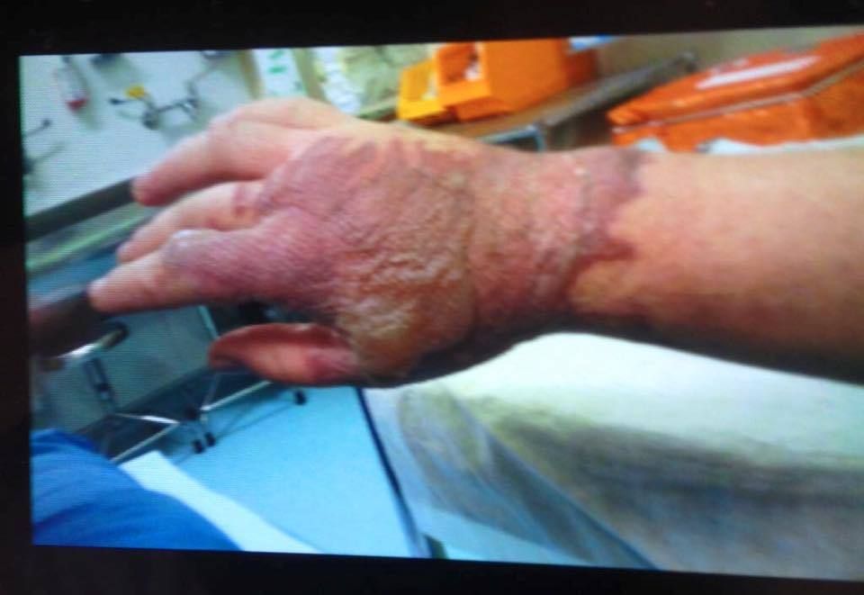 Chef Balan are un brat acoperit de arsuri, mana este plina de basici si foarte umflata. Dupa ce i s-a acordat primul ajutor, Alex s-a fotografia si a postat imaginile pe contul personal de socializare pentru a le arata prietenilor virtuali patania lui.