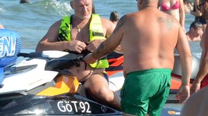 Luptatorul s-a distrat la Mamaia, calarind un ski-jet naravas, iar la final s-a tras la umbra, intr-o zona de sezlonguri plina de fete frumoase