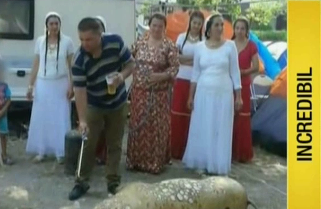 Cine a mai pomenit asa ceva? O familie de tigani din Galati a taiat porcul chiar pe plaja din Mamaia! Turistii au privit spectacolul cu pofta!