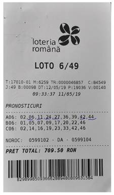 Biletul norocos a fost jucat la agentia 17-010 din Galati si a fost completat la Loto 6/49 cu 3 combinatii complete de numere, dupa cum urmeaza: 9 numere in zona A, cate 8 numere in zona B, respectiv C (in total 140 variante) si 3 variante la Noroc.