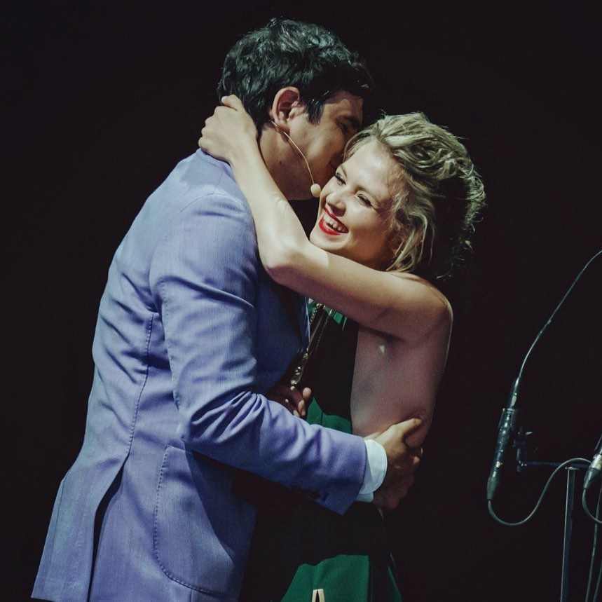„Iubita mea se uită la mine acum, pe calea asta o sărut şi o iubesc! Facem doi ani acum în mai, pe 14 mai… Noi am lucrat împreună mai de mult la un spectacol, era complicat, ea era într-o altă relaţie, dar spre final.