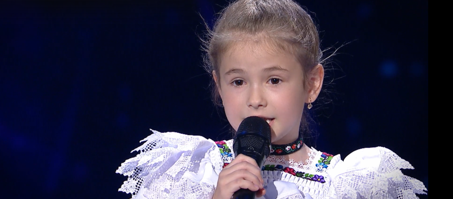 Pe lângă faptul că a făcut publicul și jurații să râdă în hohote, micuța concurentă a lăsat pe toată lumea mască cu vocea ei. Îmbrăcată într-un costum tradițional popular din zona Maramureșului, aceasta a interpretat o melodie din folclorul românesc.