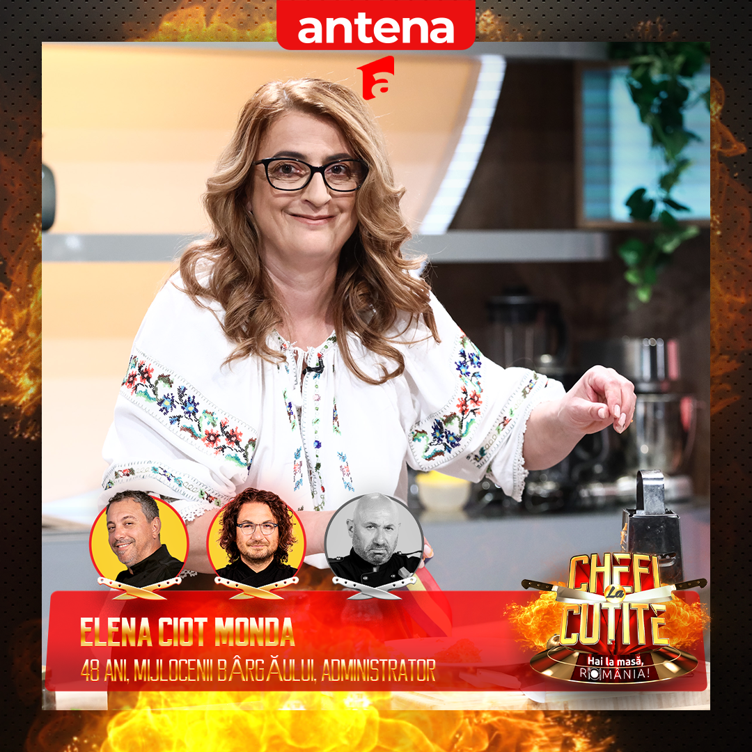 Elena Ciot Monda de la Chefi la cuțite 2023 are 48 de ani și vine din Mijlocenii Bârgăului, județul Bistrița-Năsăud. După ce a trecut de preselecții și faza de bootcamp, bistrițeanca a fost acceptată de Cătălin Scărlătescu în echipa sa de la Chefi la cuțite, sezonul 11.