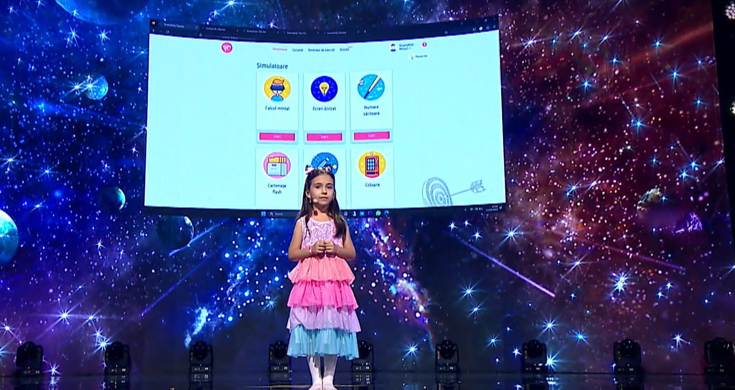 În fața juraților, Melania Ghiburdel a făcut mai multe calcule complexe, ba chiar a recitat și o poezie în timp ce a rezolvat un calcul mental cu unități și 30 de termeni, la viteza de 0,8 secunde.