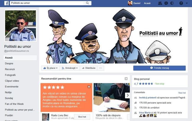 Una dintre cele mai urmarite, dar si cele mai controversate pagini de Facebook despre oamenii legii se numeste „Politistii au umor”.