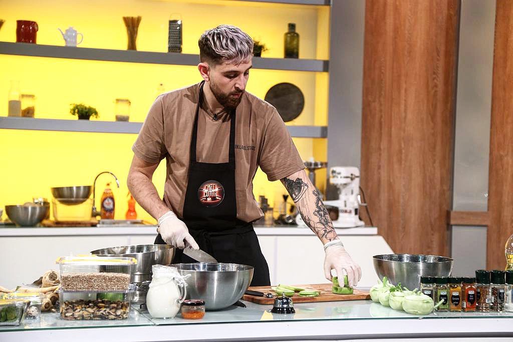 Tânărul a ales să se prezinte în fața juraților Florin Dumitrescu, Sorin Bontea și Cătălin Scărlătescu cu două preparate, sea bass cu un piure de topinambur și un starter făcut din tartar de legume fresh, într-o gulie, cu mousse de păstrăv afumat și icre de păstrăv.