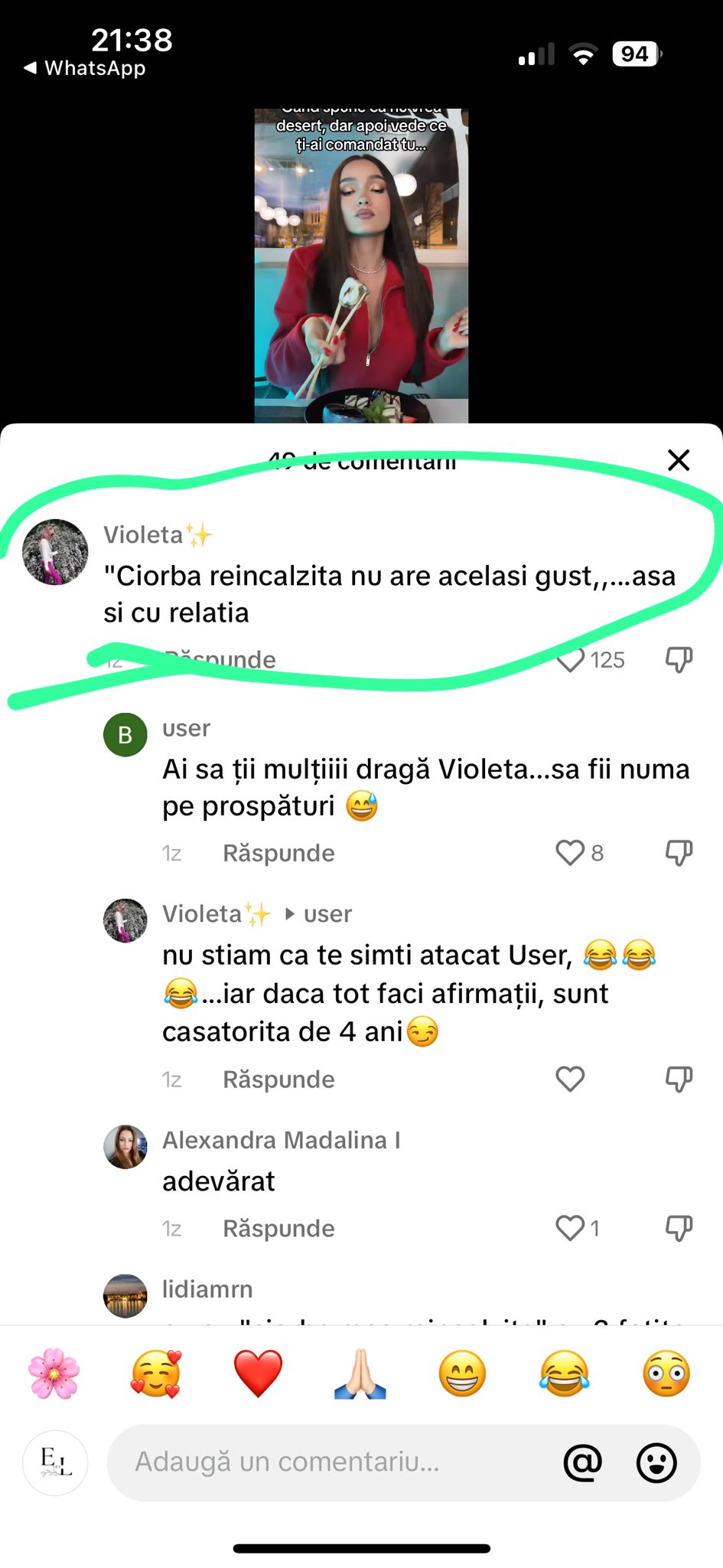 Mesajul primit de Viviana Sposub în mediul online