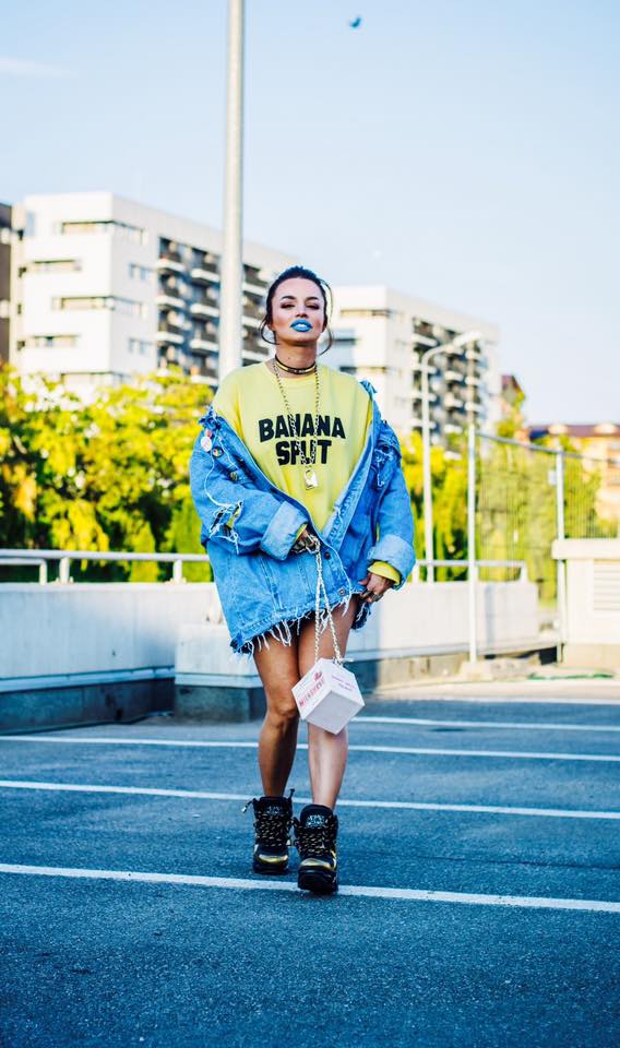 Bruneta si-a postat pe contul de socializare o fotografie in care poarta pantaloni scurti, o bluza galbena, larga cu un imprimeu pe ea si o geaca de blugi supradimensionata. In picioare are o pereche de bocanci voluminosi, iar ca tinuta sa fie pe deplin una wow s-a dat cu un ruj albastru deschis. Asa da aparitie…