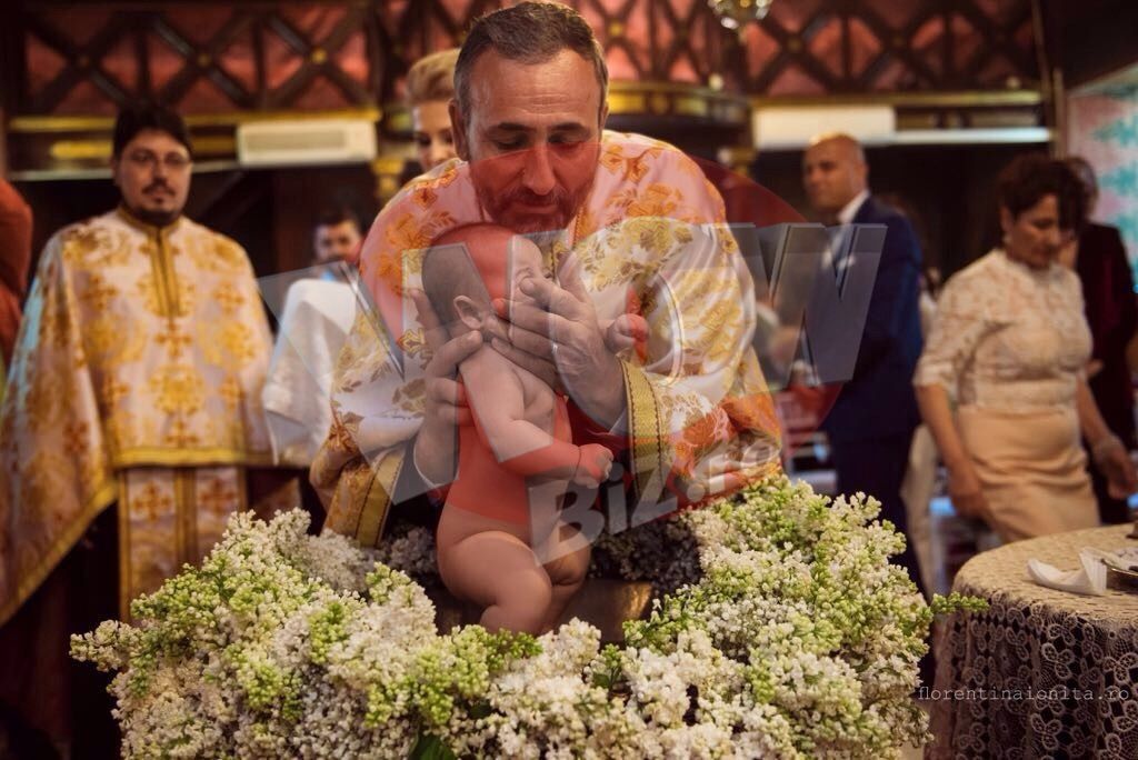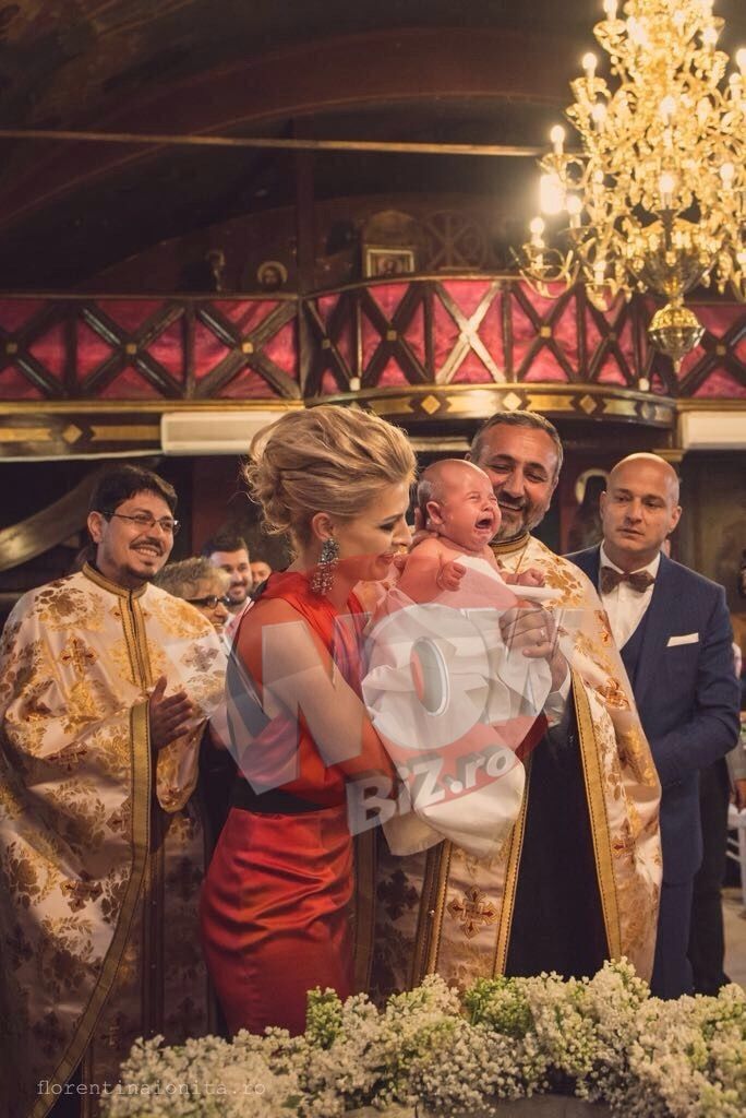 Ceremonia religioasa a fost oficiata de un sobor format din 3 preoti, iar in momentul scufundarii in cristelnita, micutul Nicolas Mihail a plans in hohote.