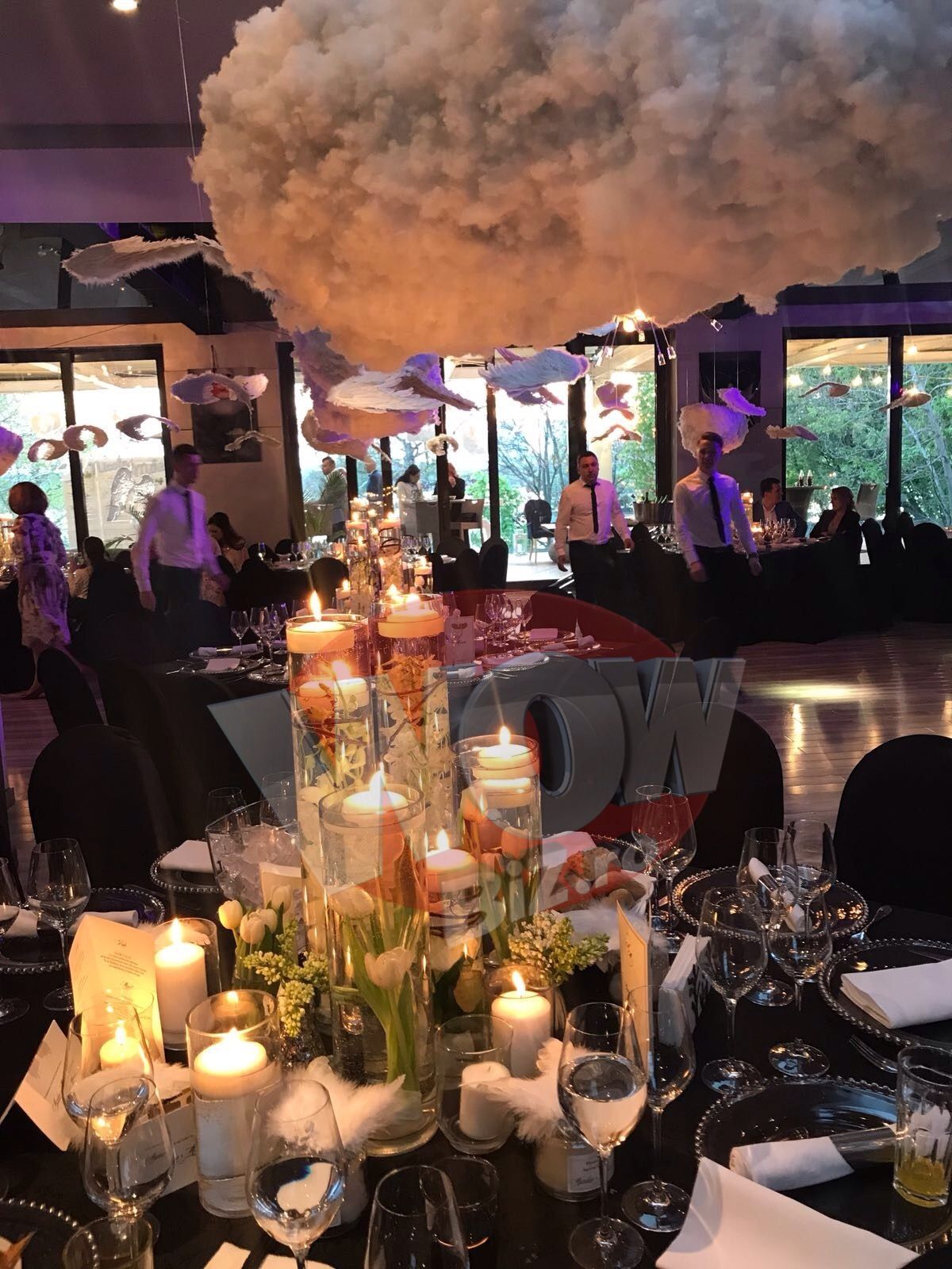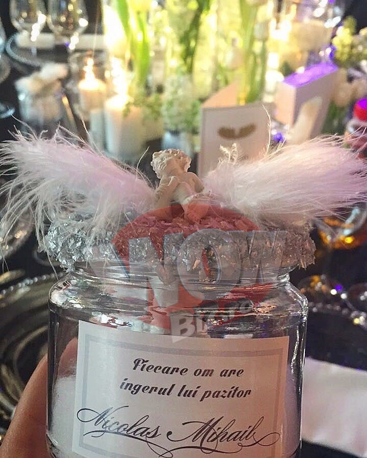 Astfel, folosind sute de aripi de inger, suspendate din tavan, nori de puf, fulgi, ingerasi, pene si alte elemente care respectau acesta tematica parintii au reusit sa transforme sala de eveniment intr-un loc desprins parca din basme.