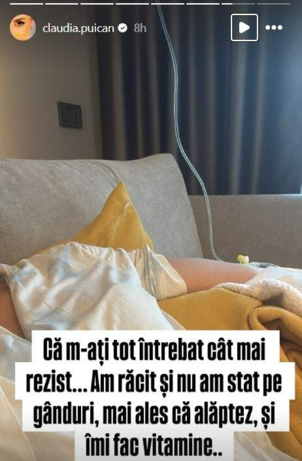 „Că m-ați tot întrebat cât mai rezist... Am răcit și nu am stat pe gânduri, mai ales că alăptez, și îmi fac vitamine”, a scris Claudia Puican, pe Instagram.
