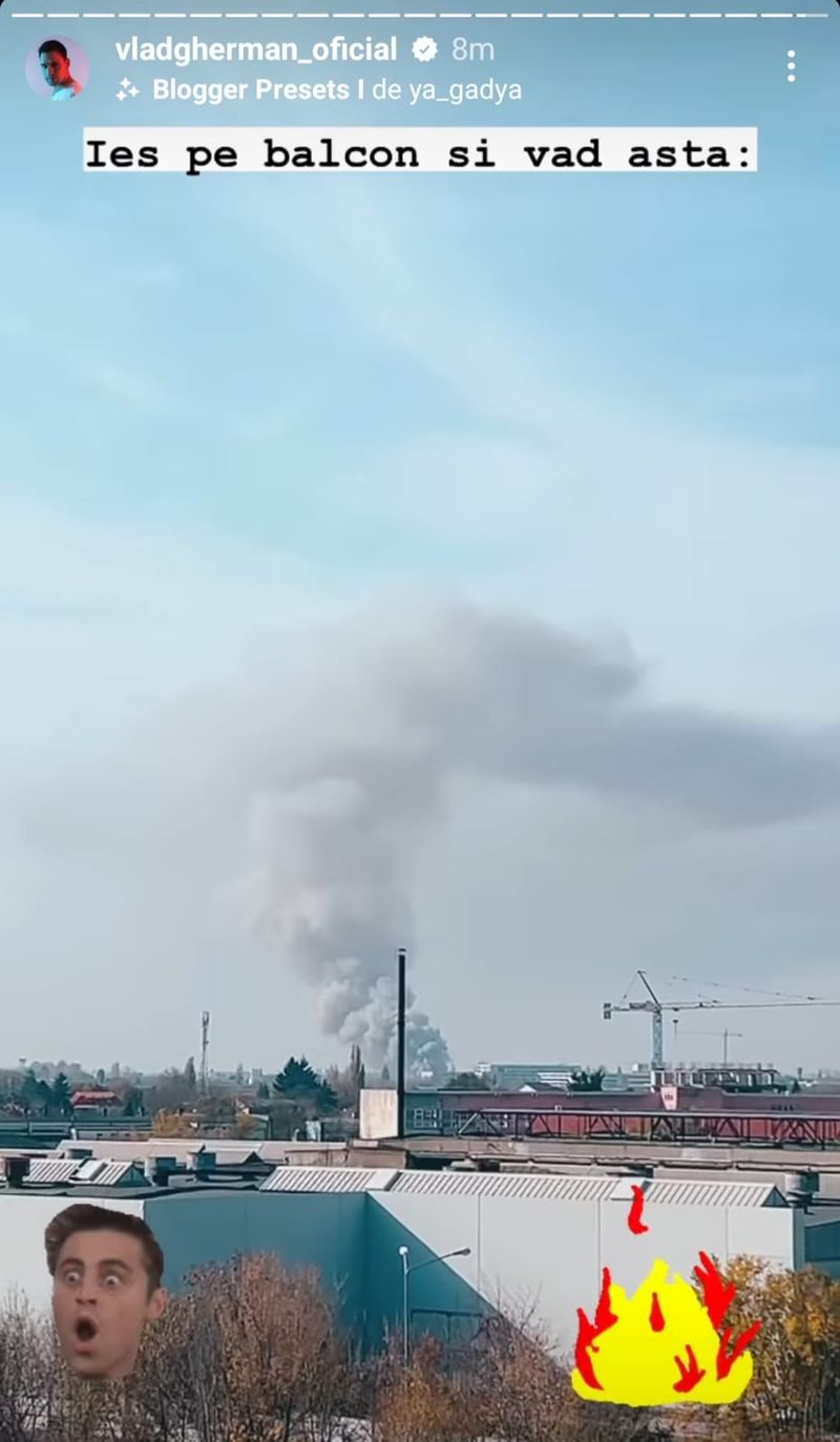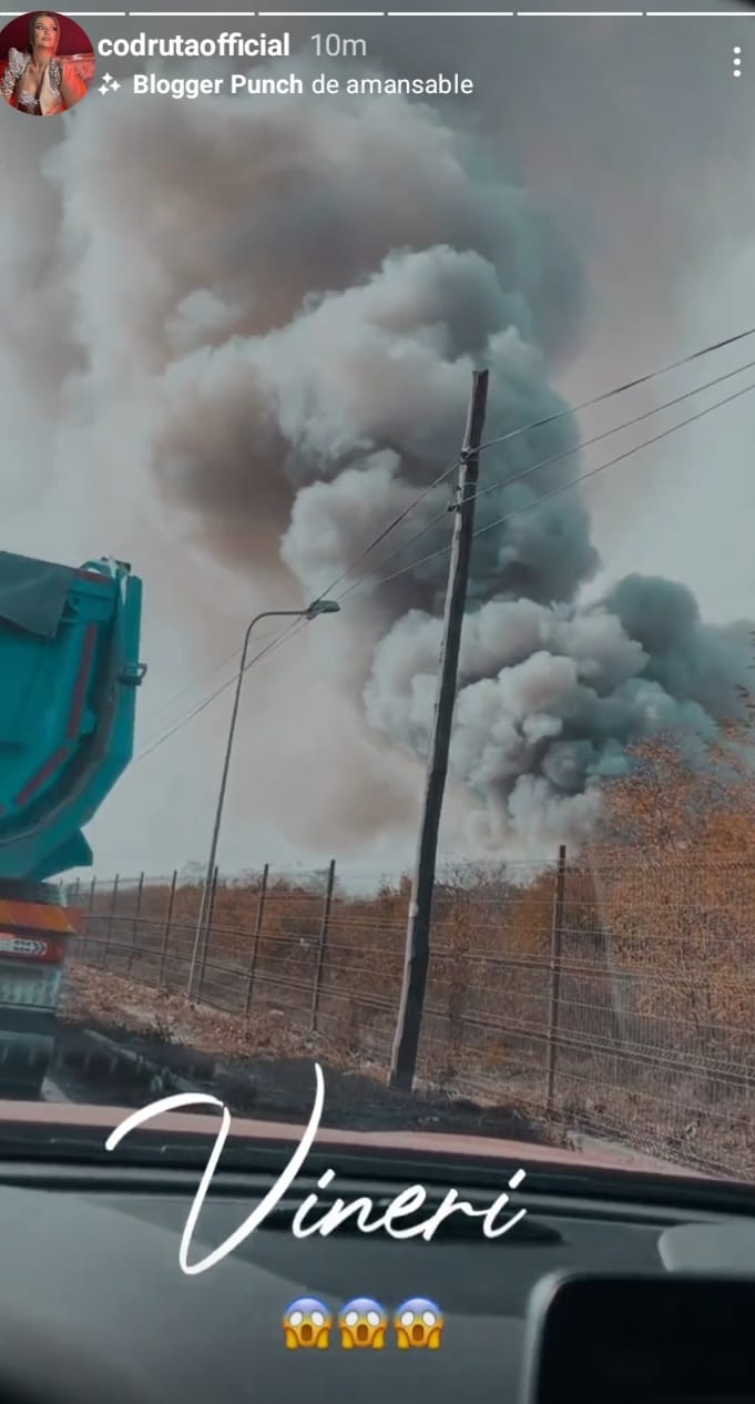 De asemenea, Vlad Gherman, care locuiește în apropiere, a surprins imagini cu fumul dens, spunând că a văzut totul atunci când a ieșit pe balconul din locuința sa: „Ies pe balcon și văd asta”.