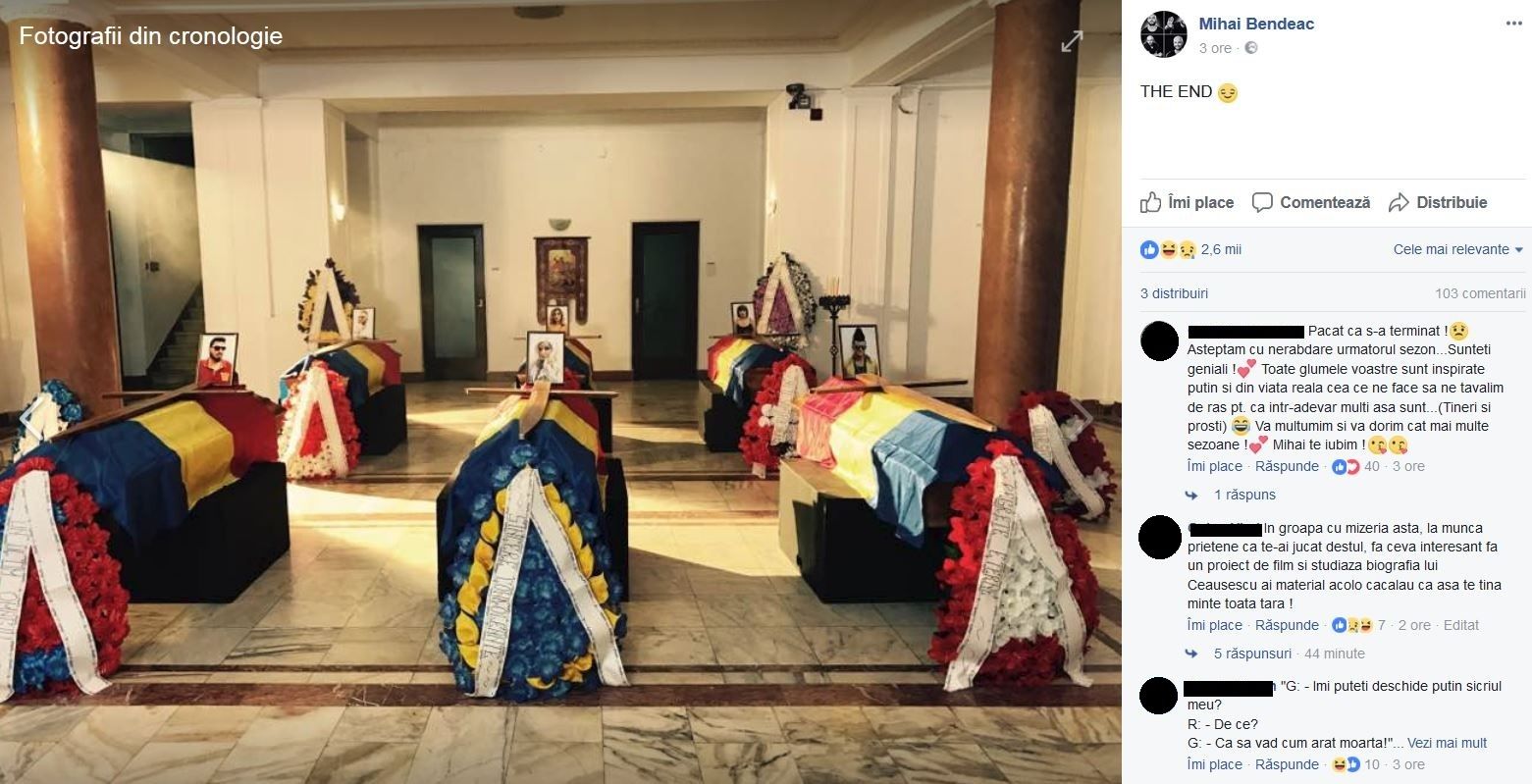 O coincidenta macabra a facut ca Mihai Bendeac sa posteze o imagine cu mai multe sicrie si cu textul „The End” (Sfarsitul), cu doar cateva ore inainte sa se afle ca actrita Stela Popescu a murit.