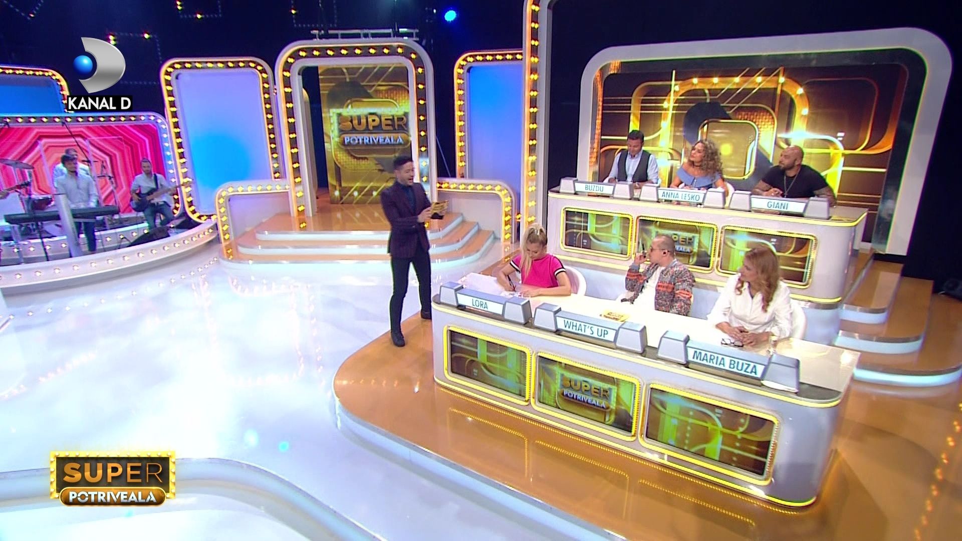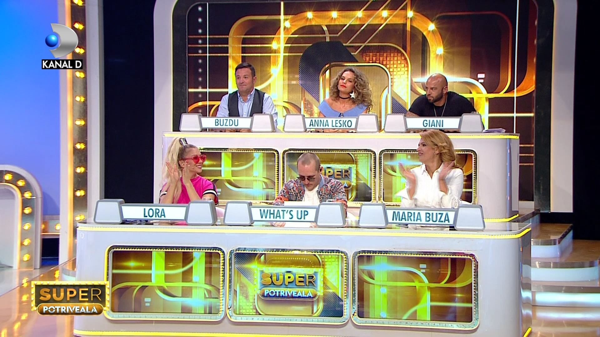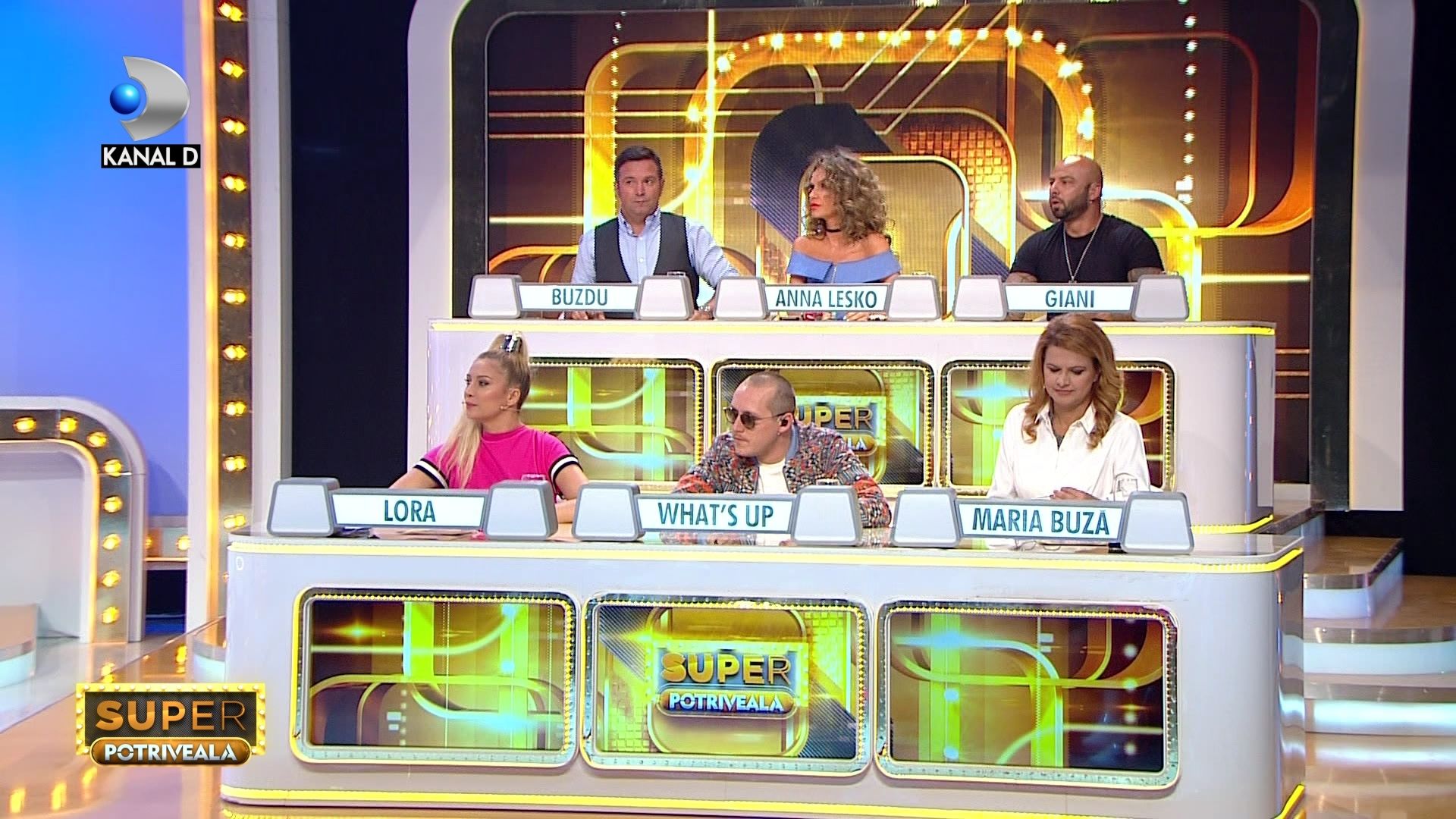 Lora, Daniel Buzdugan, Whats’ UP, Anna Lesko, Giani Kirita si Maria Buza, vedetele care alcatuiesc panelul editiei, intra in forta, incarcati cu buna dispozitie si, mai ales pusi pe glume, in platoul „Super Potriveala”.