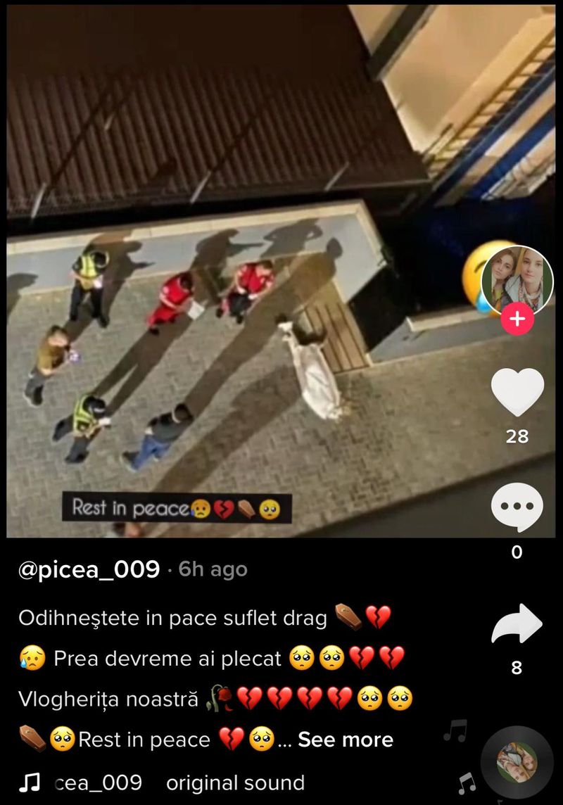 Scene greu de privit cu trupul neînsuflețit al Veronicăi, tânăra moldoveancă, care s-a aruncat în gol de la etajul 14, seara trecută! Influencerița de 24 de ani și-a șocat familia și fanii de pe rețelele sociale, după ce a ales să-și pună capăt zilelor într-un mod terifiant. Fata nu a stat pe gânduri, și-a dat geaca jos, și-a lăsat geanta și telefonul și s-a aruncat în lenjerie intimă de la etajul 14 al clădirii în care locuia cu iubitul ei. Se pare că bărbatul nu se afla acasă în momentul nenorocirii.