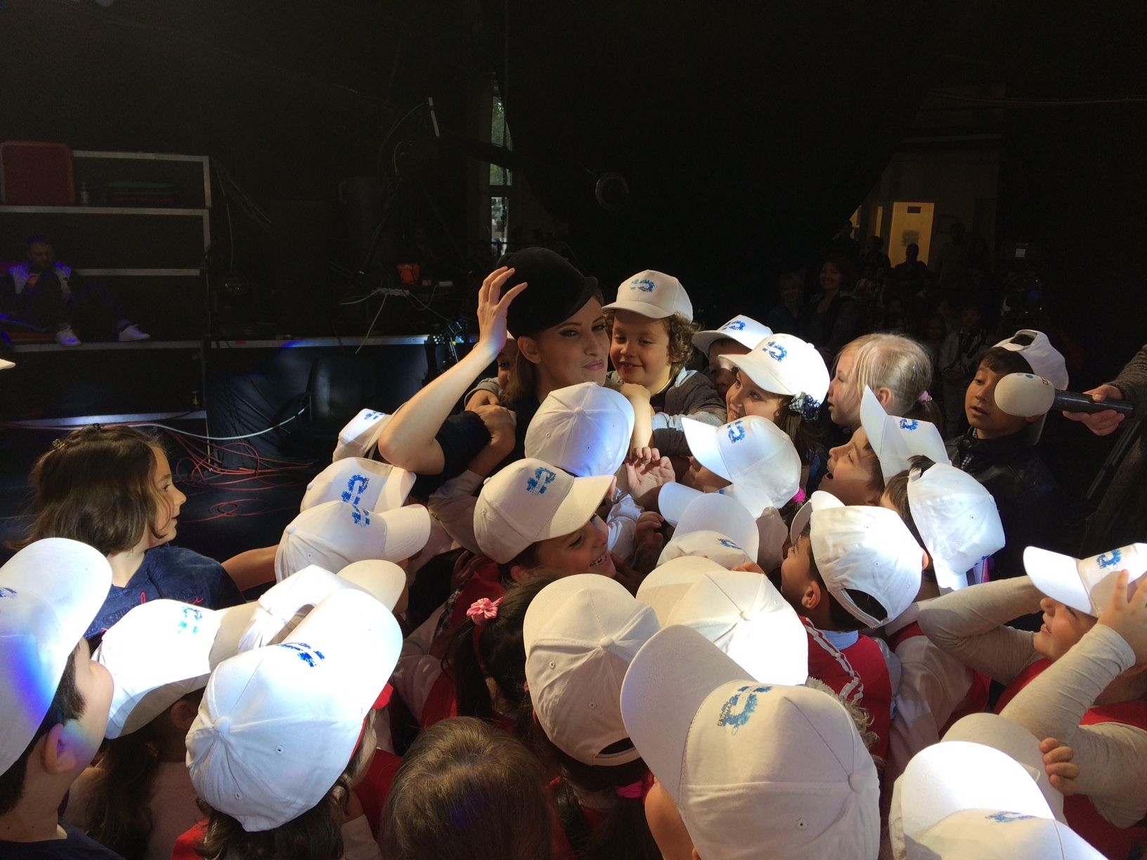 “Imi sunteti foarte dragi, copii, dar haideti sa ne pozam pe rand!”, spunea Iulia Albu, in timp ce era “invaluita” de marea de copii, dornici sa o imbratiseze.
