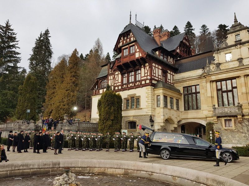 UPDATE ora 13:31 – Sicriul cu trupul neînsufleţit al Regelui Mihai a ajuns la Castelul Peleş, urmând să fie depus în Holul de Onoare al fostei reşedinţe regale. Publicul nu are acces pe durata şederii sicriului la Domeniul Regal Sinaia, transmite corespondentul MEDIAFAX.