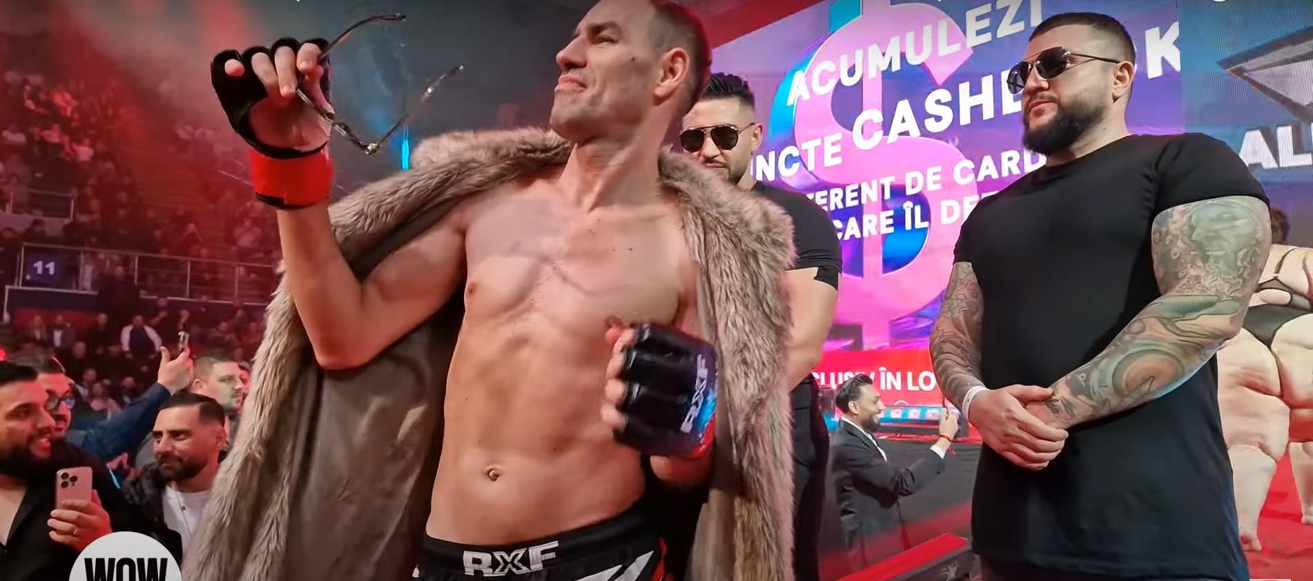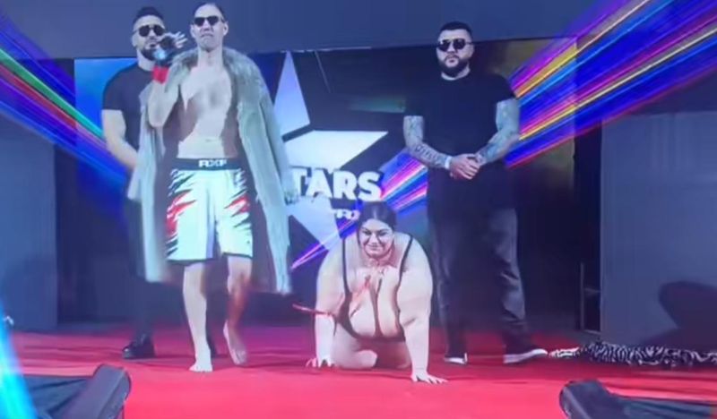 Costică, show total la RXF! Intrare istorică în ring alături de o femeie corpolentă, în lesă, dansurile lascive și atingerile dintre ei au stârnit controverse aprinse | EXCLUSIV